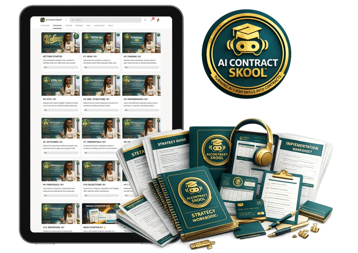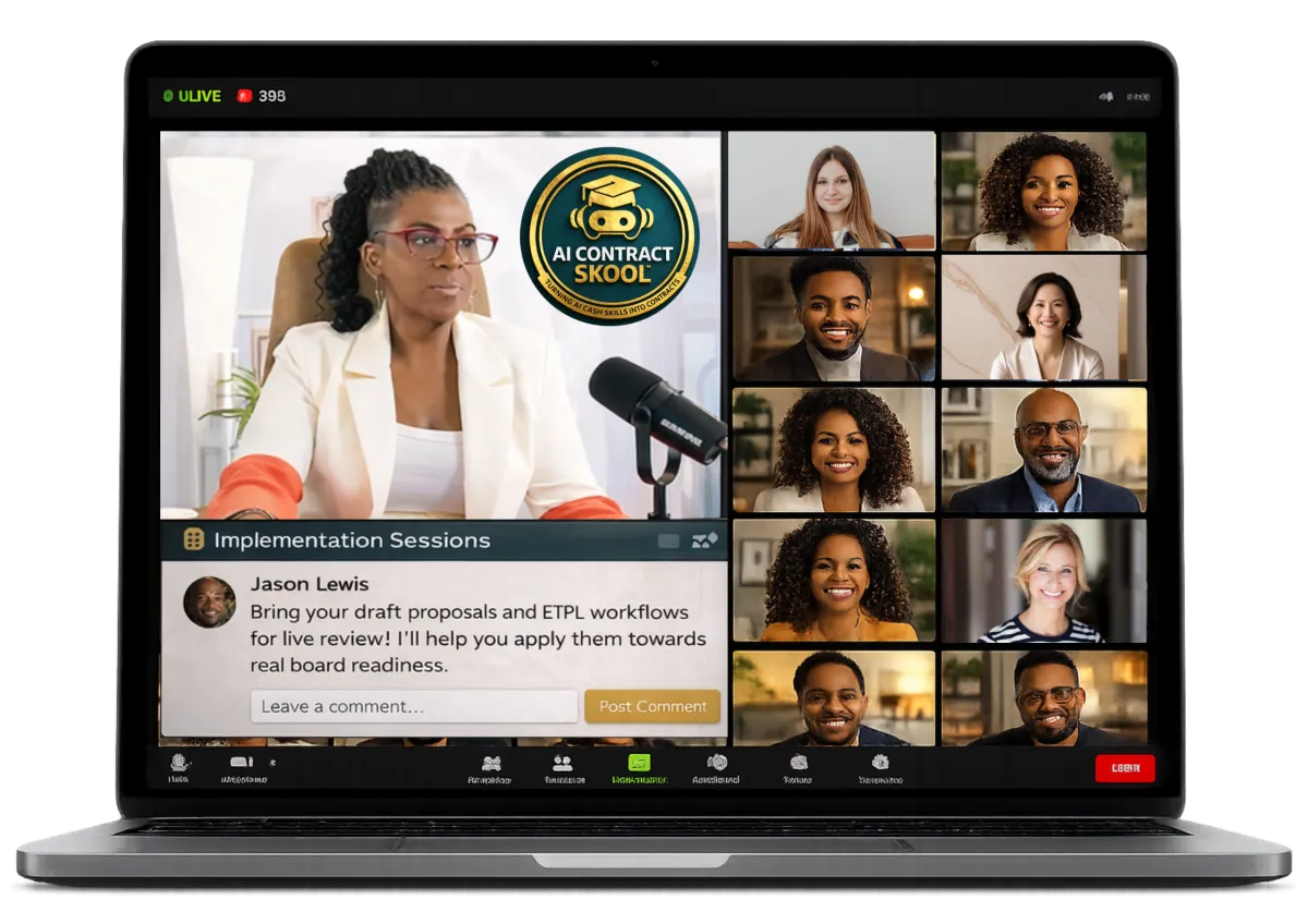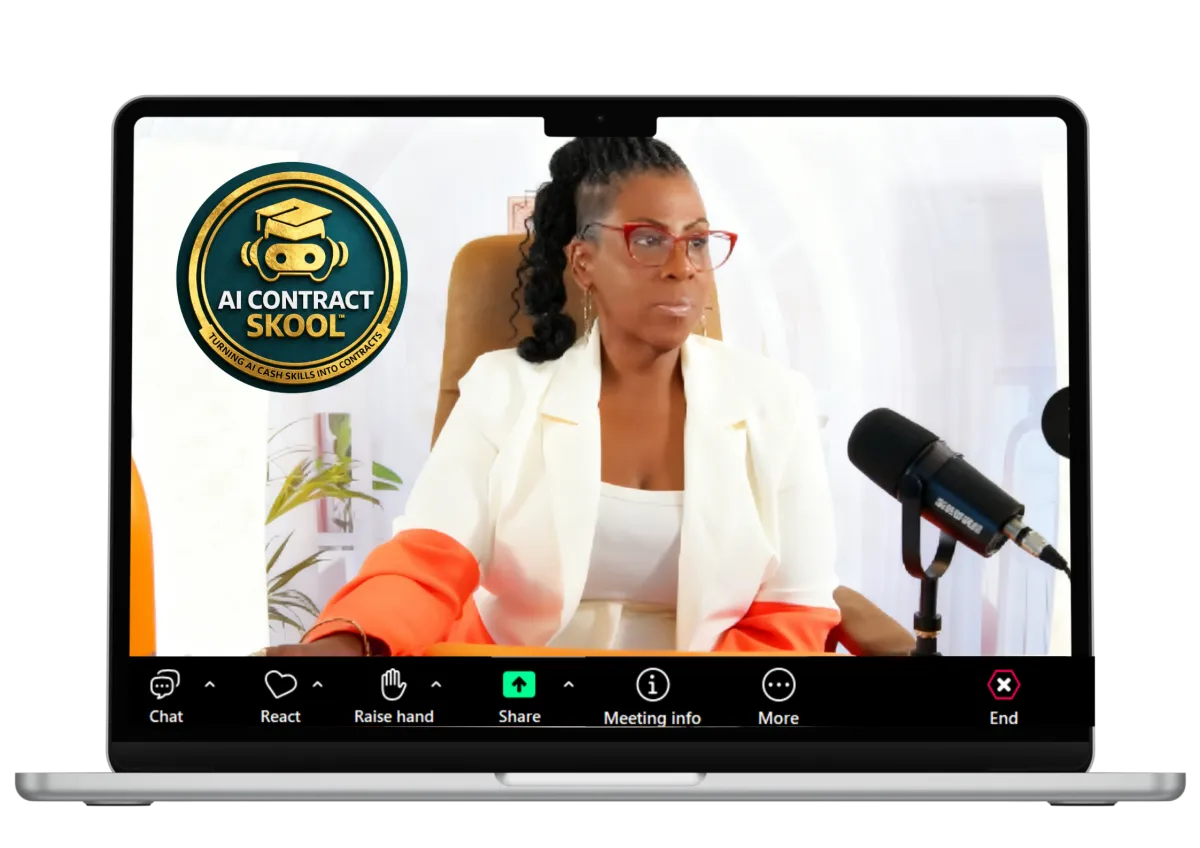 Through AI Contract Skool™, she teaches capable operators how to convert AI skills and professional expertise into contract-ready programs.